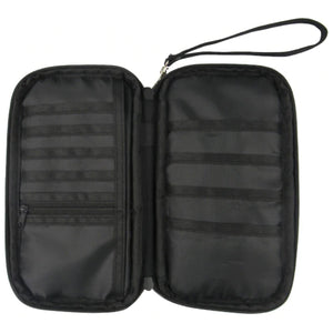 An outer zipper allows you to securely close the organizer and prevent items from falling out, and an attached wrist loop lowers the risk of theft when you hold it in your hand in public.